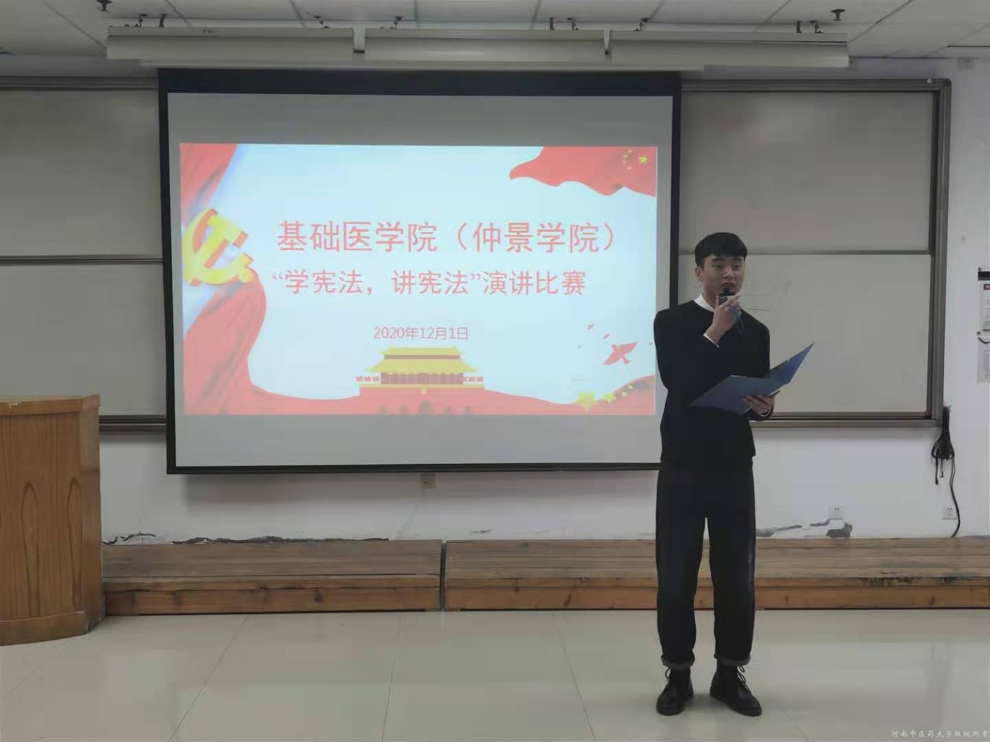 为贯彻落实习近平总书记关于宪法学习宣传教育的系列重要指示精神,进一步在我校普及宪法知识、弘扬宪法精神、树立宪法权威,推动宪法教育进校园进课堂,按照校党委统一部署及工作安排,基础医学院于12月1日中午在教学楼四楼阶梯教室举办本科生“学宪法,讲宪法”演讲比赛,全校各年级近三百名学生代表参加,学工办全体老师担任评委。