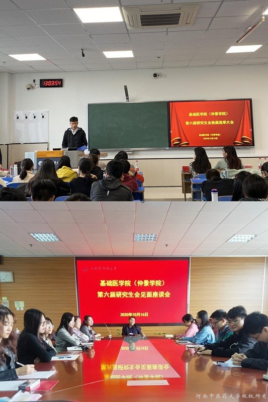 10月15日中午,基础医学院研究生会第六届换届大会在教学楼A218顺利召开。基础医学院研工办主任张文娴、学工办主任刘旭初、学工办副主任戴冰星以及基础医学院全体辅导员老师出席本次大会。大会由2018届研究生张艳同学主持,基础医学院2020级全体研究生参会。