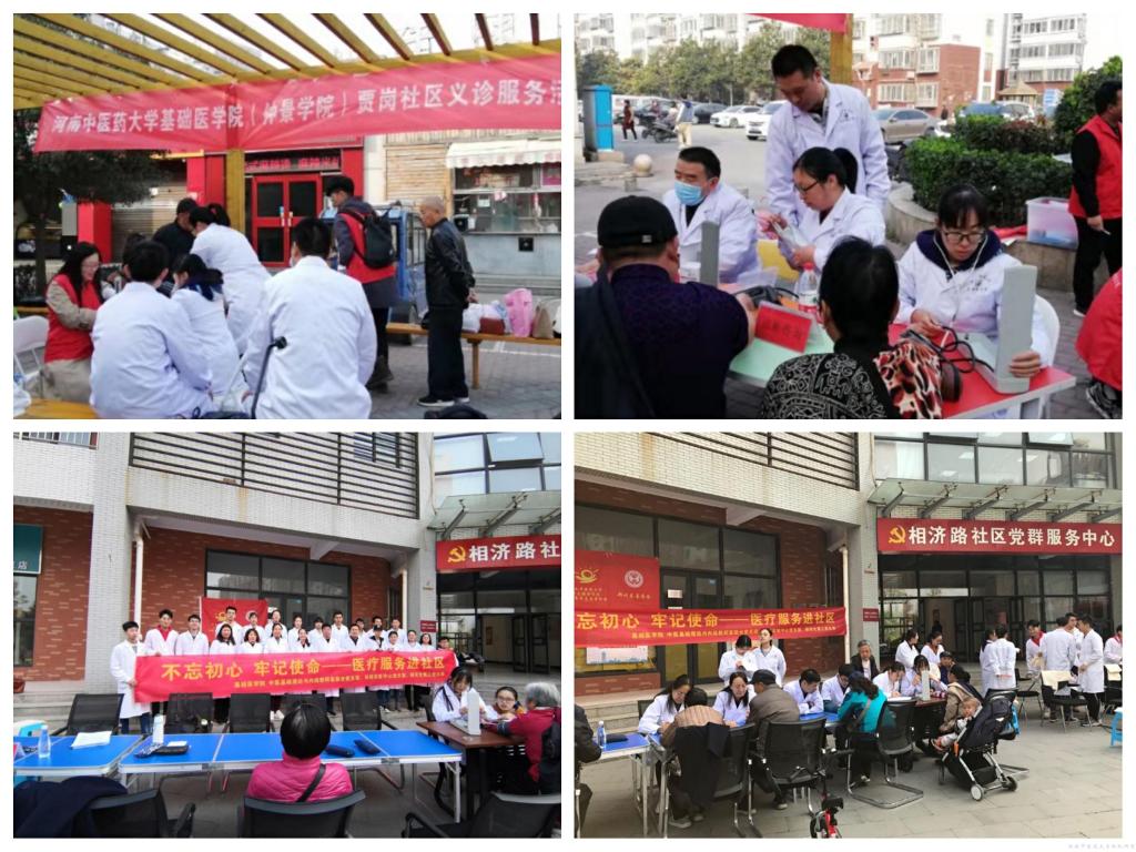 2019年11月16日,基础医学院师生党员分别在党委书记禄保平和副院长李宁的指导下,赴贾岗社区及航院社区开展以“急救、养生进社区”“医疗活动进社区”为主题的义诊活动,为广大群众送温暖,提供健康服务。