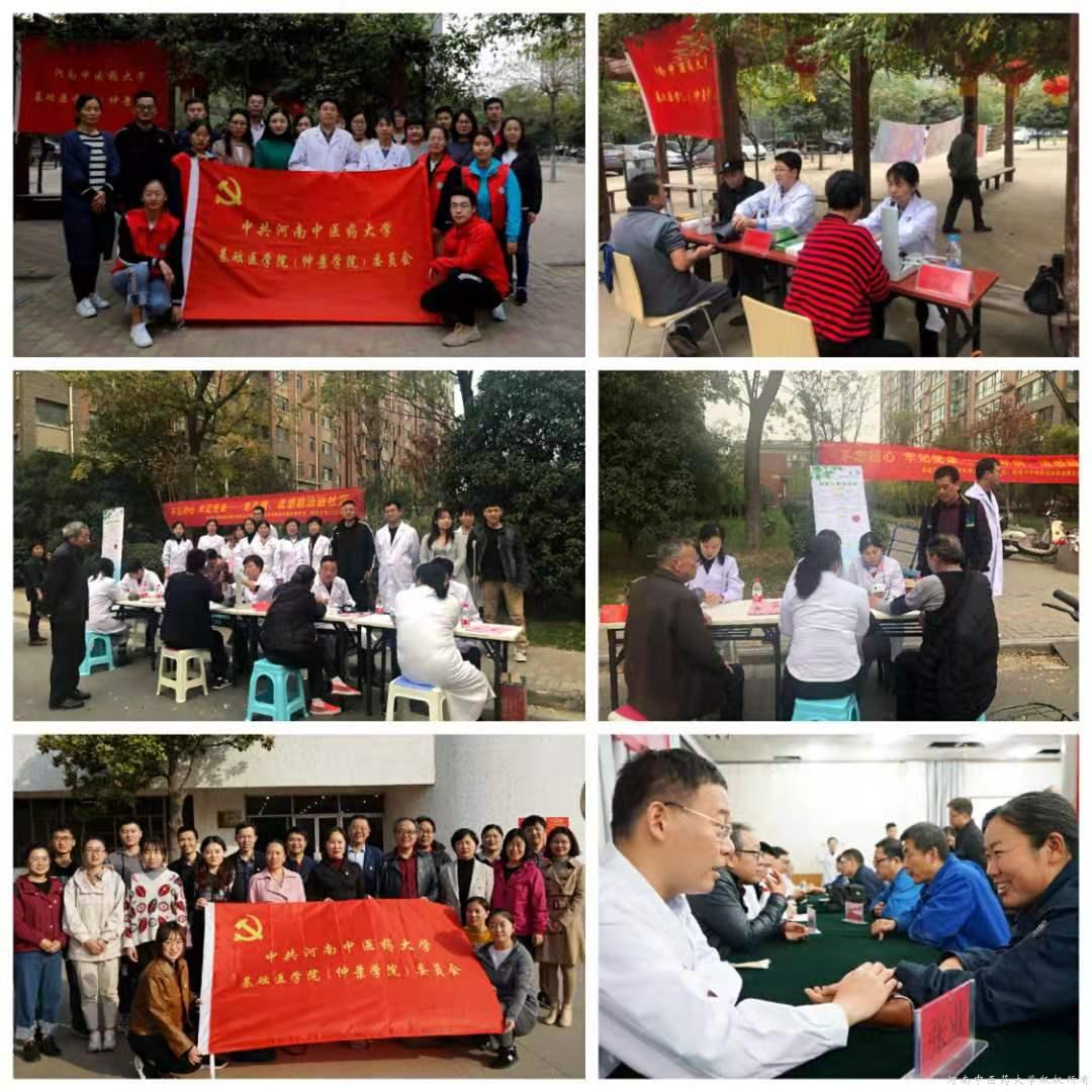 2019年11月12日,基础医学院师生党员分别在院长李根林、副院长李肇进和副院长曹珊的指导下,赴河南牧业经济学院龙子湖校区家属院、河南中医药大学家属院和郑州拓洋实业有限公司开展以“关爱生命,从预防开始”“老年病,流感防治进社区” “送医惠民”为主题的义诊活动,为广大群众提供健康咨询及诊疗服务。