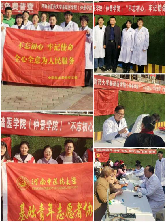 为在我校基层党支部深入开展 “不忘初心、牢记使命”主题教育,扎实群众路线,深化党建带动团建,2019年11月19日,基础医学院中医临床基础党支部、生理学党支部、本科生第三党支部带领我院青年志愿者协会赴河南省政府家属院,开展“送医惠民”志愿服务活动。