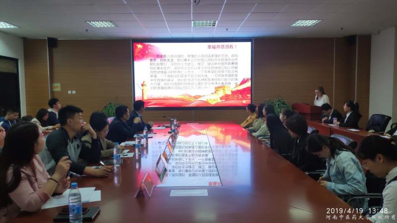 (图文: 刘淘淘)值此中华人民共和国成立70周年和五四运动100周年之际,为进一步增强研究生的历史使命感和责任感,培养研究生爱国主义情怀,4月19日中午,基础医学院学工办在学院四楼会议室开展“信仰的力量—学党史、颂党恩、讲奉献”研究生演讲比赛。基础医学院(仲景学院)党委书记禄保平、党委副书记徐里、全体辅导员作为评委参加此次活动,2018级基础学硕一班研究生作为代表参会。