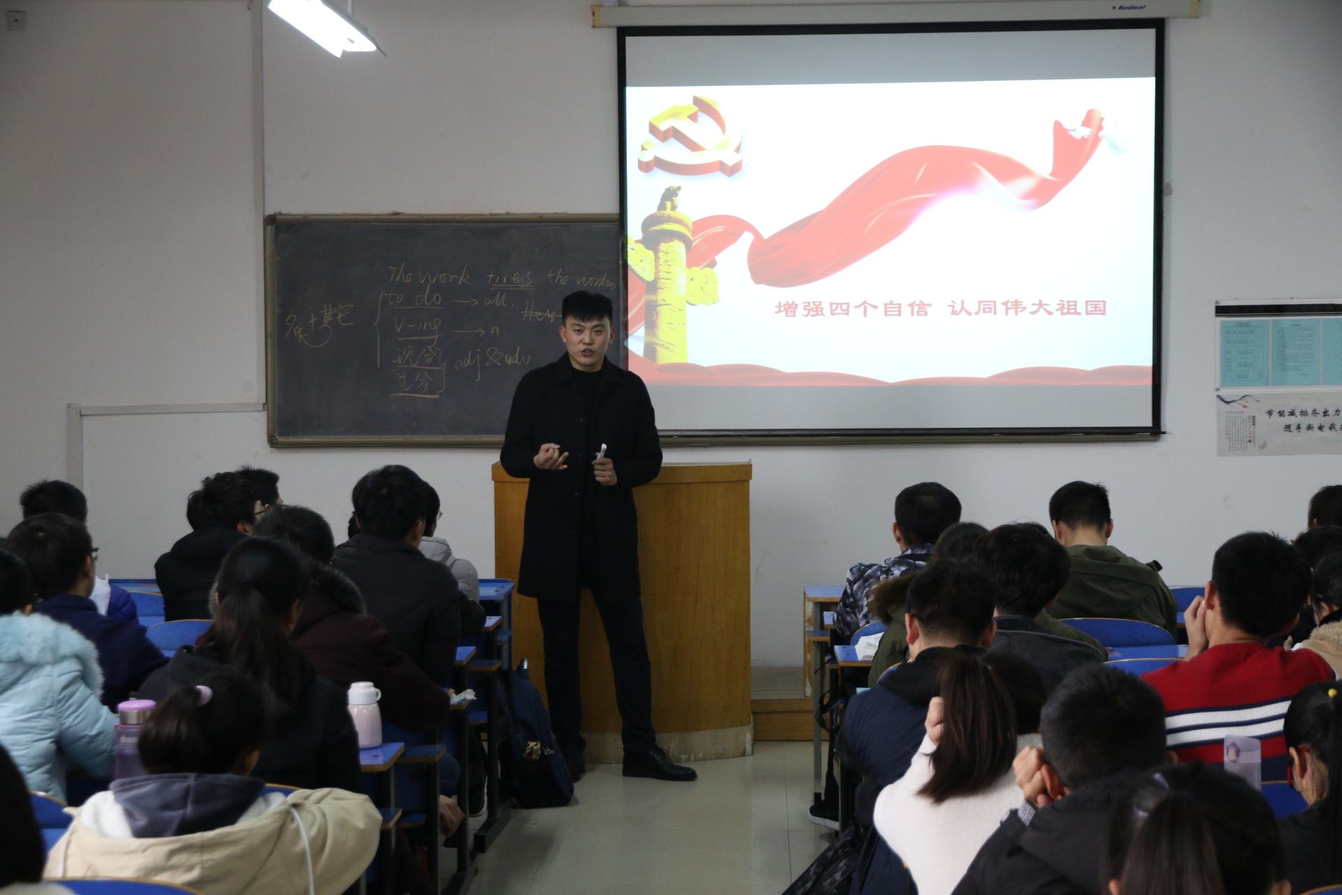 为进一步引导我院学生牢固树立爱国之心和民族团结意识,基础医学院于12月24日在A441教室召开了以“增强‘四个自信'、认同伟大祖国”为主题的宣讲会议。此次会议由2018级辅导员闫辉老师主讲,我院全体少数民族学生以及2018级各专业部分学生参加了此次宣讲会。