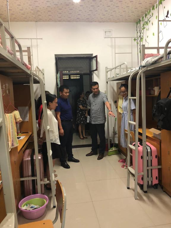 新学期伊始,为全面了解学生返校情况,深入了解学生生活、学习与思想上的动态,9月2日下午,基础医学院(仲景学院)李根林院长、徐里副书记和学工办全体老师一起深入走访学生宿舍,实地查看,面对面与学生交流。
