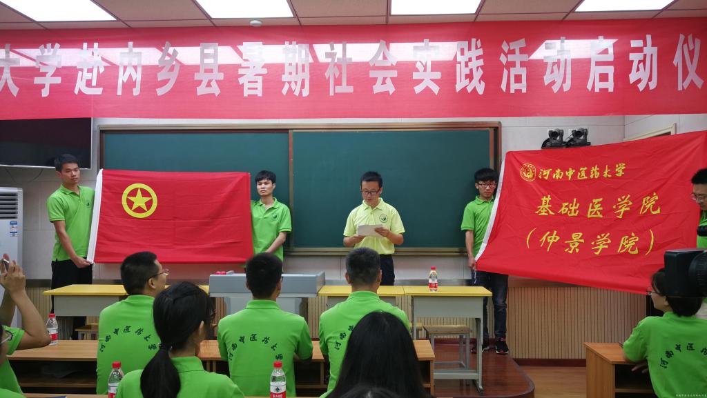 为引导大学生深入社会,了解国情,到基层去、到群众中去、到改革建设的第一线去,在实践中认识自己、锻炼自己、服务社会,展项风采,基础医学院(仲景学院)积极响应校团委号召,将在内乡进行为期一周的暑期社会实践活动。此次社会实践服务团共有32名本科生、9名硕士生、4名带队专家参加,期间将在内乡县5个乡镇中开展医疗服务,精准扶贫,健康科普、政策宣讲、基层调研等多项实践内容。