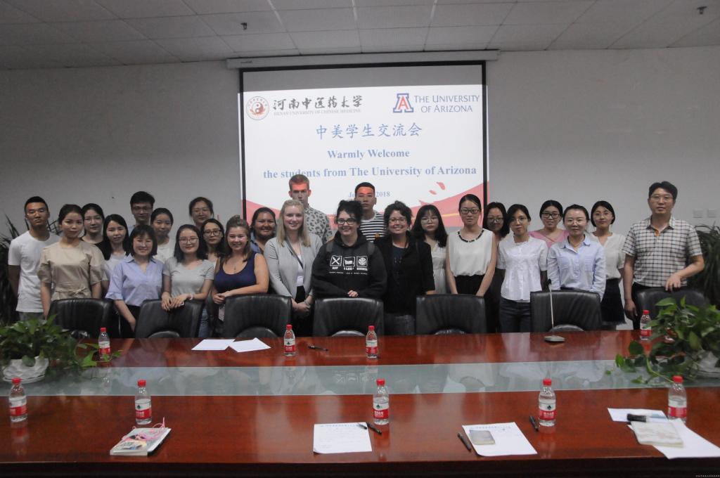 为拓宽我院学生国际化视野,6月1日晚,基础医学院(仲景学院)特邀来自美国亚利桑那大学公共卫生学院的七名学生与我院预防医学专业学生代表在四楼会议室举办了别具一格的“中美学生交流会”。基础医学院(仲景学院)党委副书记徐里、预防医学学科主任闫国立副教授、学工办主任刘旭初以及本科生代表二十余人参加了此次交流会。