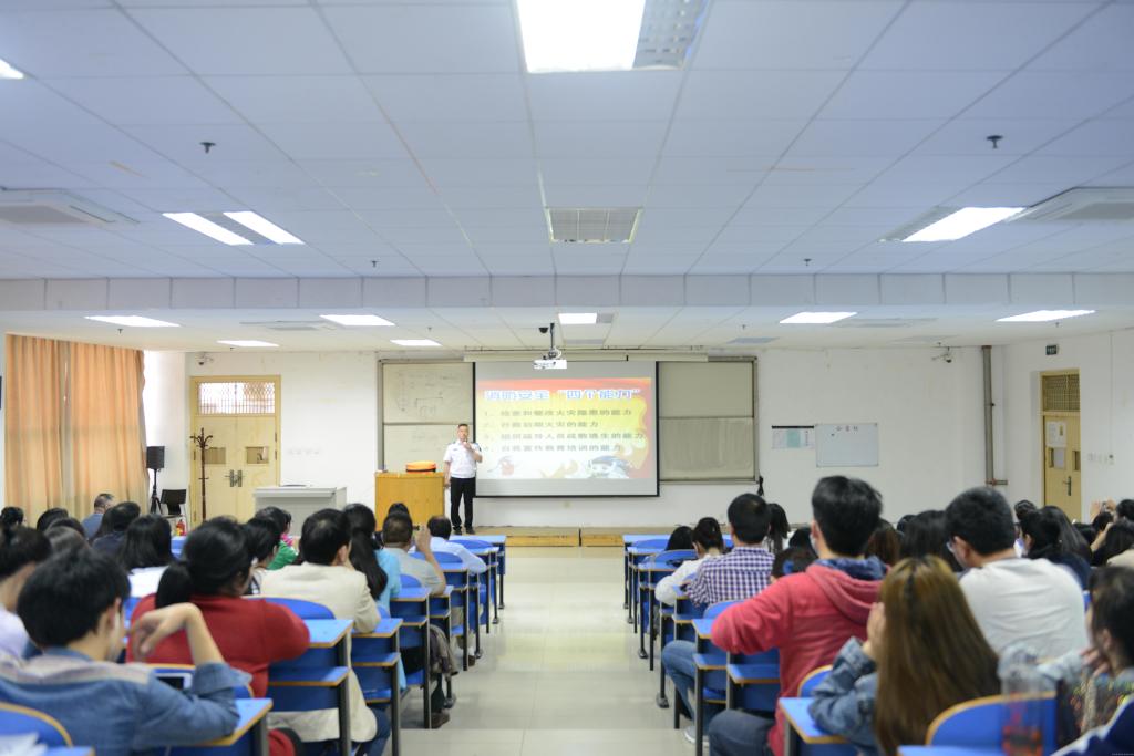 培训会上,刘顺齐教员首先通过近几年发生的一个个真实生动、教训深刻的重大火灾案例,展示出火灾给社会、给家庭带来的重大灾难和不幸,向大家说明了消防安全的重要性、必要性。随后,刘教官结合个案分析,深入浅出地向老师、同学们讲授了在日常工作和生活中所要注意防范的致灾因素,发生火灾后如何正确报警、使用灭火器消防栓等设施,以及如何正确引导人员疏散、逃生自救方式方法与路径等基本的消防安全常识,还结合授课内容现场演示了灭火器具的性能、用途和使用方法,使参加培训的老师和学生们受益匪浅。