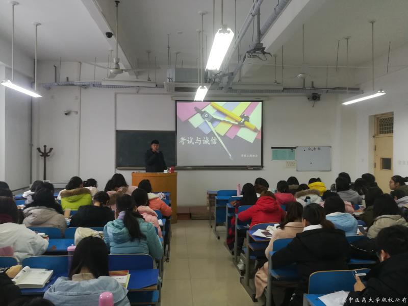 诚实守信,是一种品行、也是一种责任,更是优秀班风、学风的体现。各班辅导员老师带领学生进一步解读《学生手册》中相关考风考纪的内容,利用前期制作的PPT,认真讲述诚信的重要性及诚信考试的必要性,对考试要求和考场纪律作了详细的传达,要求同学们认真学习相关的考试管理、考试纪律及违纪处分等方面的规章制度。老师们一方面重点强调同学们要严于律己,深刻认识考试违纪的严重性,严守各项考试纪律,杜绝考试违纪行为的发生;另一方面,教导同学们要在最后冲刺复习中注重正确的考试策略,提高复习效率。其中2016级预防一班班主任刘颖老师提出“摒弃前嫌,把握当下,轻松应考”的考试心态,让学生在心理上克服考试前的紧张心理,合理安排复习时间,注意劳逸结合。最后,老师们鼓励大家以饱满的热情和积极的态度投入到备考中去,争取取的好成绩。