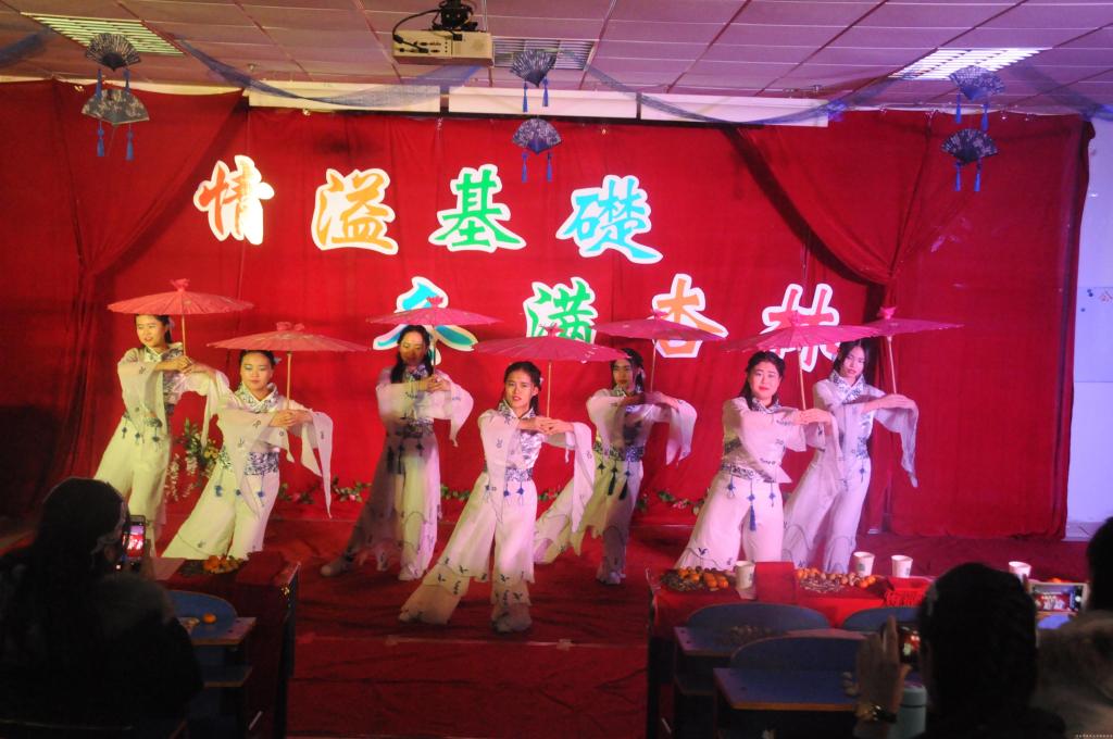 中华文化传承源远流长,舞剑《刀光剑影》刚健有力;歌曲《All of me》、《你给我听好》、《房间》等轮番上场,或温馨浪漫,或轻快悠扬,或活泼动感。教师代表杨联河老师精心准备的独唱《天堂》,将晚会气氛推向高潮;歌舞《棠梨煎雪》、民舞《青花瓷》让观众心旷神怡,沉醉其中;而令人捧腹大笑的相声《满腹经纶》和小品《追梦日月》表演,更是让观众掌声连连,欢笑不断;少数民族学生们魅力四射民族舞表演《月亮湾》,跳出了青春的舞步,跳出了专属于他们的靓丽风姿,晚会还特别设置了颇有新意的抽奖环节,可爱的小奖品也为晚会增添了很多乐趣。