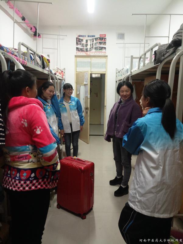 检查中,各年级辅导员老师就学生的生活情况、是否适应现在的环境等进行细致的询问和交流,没到一个宿舍都仔细查看学生宿舍有无存在安全隐患问题,视野大至地面、小至床铺、微至桌角,积极提醒同学们以对自己人身财产安全负责的态度,牢固树立消防等安全意识,严格遵守学校要求,绝不允许在学生宿舍使用违规电器,防范于未然,做一个文明大学生。交流中各位老师同时告诫学生们秋冬季节是传染病的高发季节,宿舍内要坚持勤打扫、勤通风,保持好干净整洁的内务,宿舍成员也要做到劳逸结合,注意锻炼、合理饮食,预防疾病发生;班干部和寝室长要落实好安全检查制度及夜间查寝制度,加强宿舍管理,共同做好宿舍安全稳定工作。