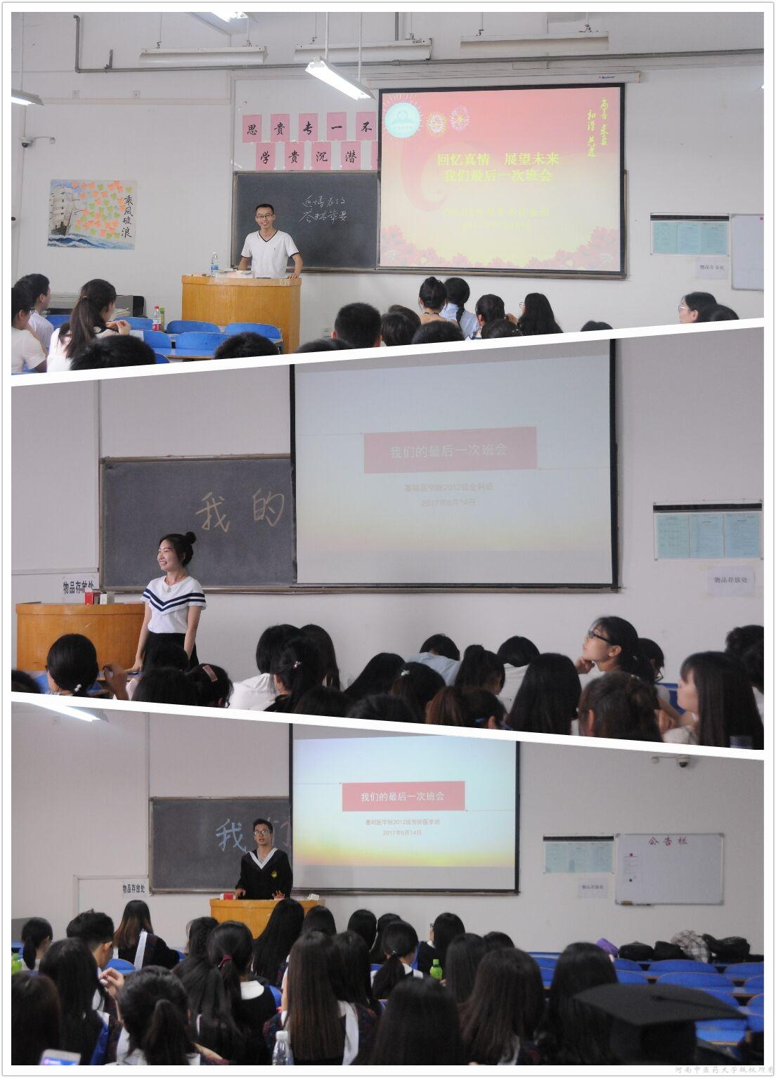 又到毕业季,难舍同窗情。为营造温馨和谐的毕业季氛围、展现我院2017届毕业生良好的精神风貌和卓有成效的育人成果,增强毕业生的归属感、责任感及使命感,6月12日——6月16日基础医学院各毕业班相继开展“学会感悟分享成长”—“我们最后一次班会”主题活动。