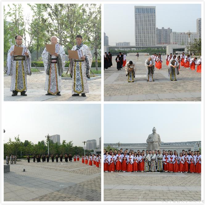 2017年6月15日上午,由基础医学院承办的第八届仲景学术文化节“读经典拜医圣”活动在我校新区仲景广场举行,中华中医药学会中医药文化分会学术顾问许敬生教授、河南中医药学会仲景学术分会主委王振亮教授、我校科技处张振强副处长、基础医学院高剑峰副院长、仲景学术传承班40余名学生代表身着汉服,肃立在医圣像前拜谒东汉伟大医学家张仲景,活动由张振强副处长主持。