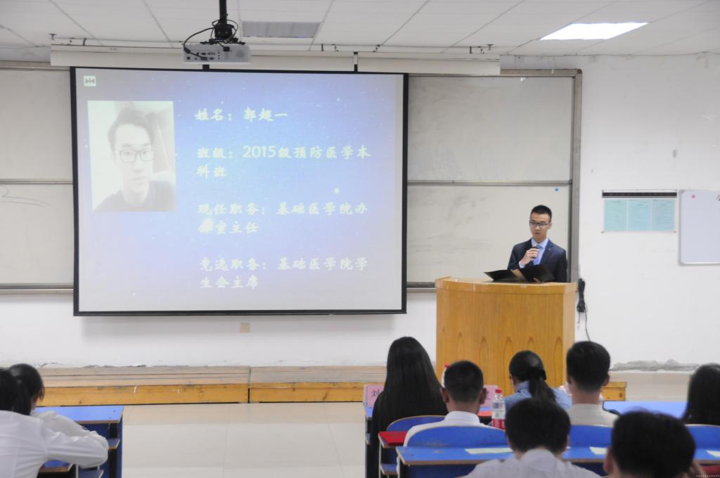 为保障基础医学院学生会工作的连续性,更好的贯彻落实学校、学院的指示精神,培养一批高素质、高水平的学生会干部,充分发挥我院学生会的自主职能,5月25日中午,基础医学院在四楼阶教举办第十一届学生会换届选举大会,基础医学院学工办全体老师、第十届学生会成员、“博雅崇实”实践班成员以及各班学生代表参加了此次大会。