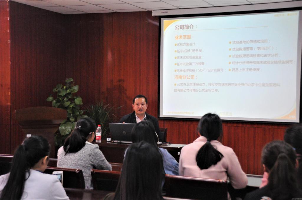 为进一步拓展2017届毕业生就业渠道,基础医学院于3月31日在教学楼BS820举办预防医学专业专场招聘会。本次招聘会特邀北京中生恒益医药科技有限公司河南分公司张楠经理进行宣讲。我院毕业生辅导员刘旭初老师及2012级预防医学班部分学生参加了本次招聘会。