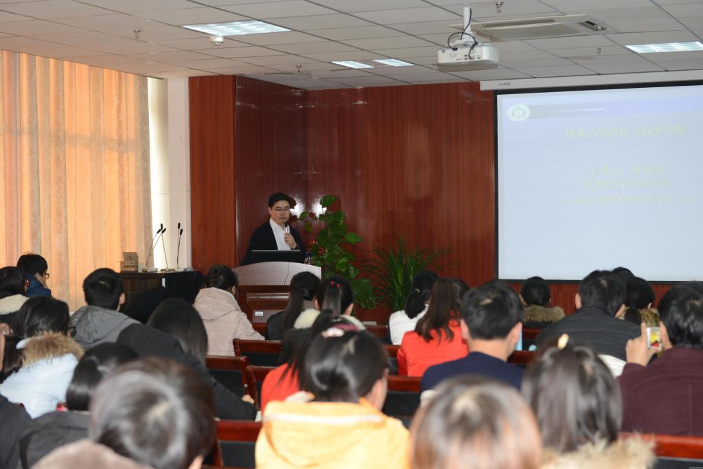 2016年11月25日,由基础医学院承办的“博士沙龙”在我校新区教学实验大楼BS820举行,黑龙江中医药大学柳成刚教授应邀做客本次讲座,我校相关院部教师、研究生等100余人聆听了此次讲座,讲座由基础医学院曹珊副院长主持。