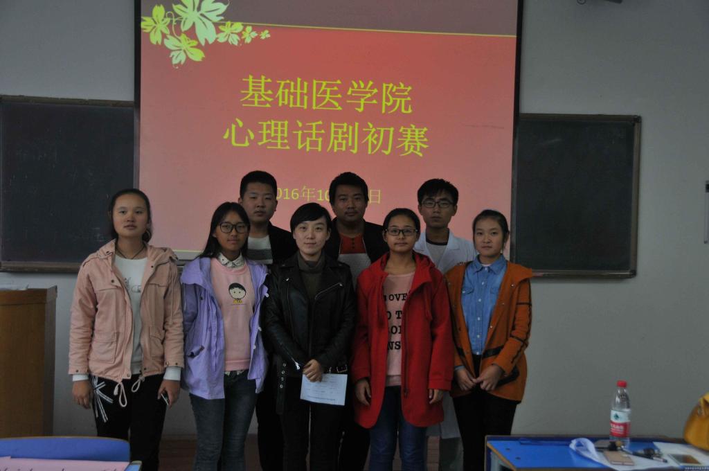 为进一步宣传和普及心理健康知识,展现我院学生积极、健康、向上的精神风貌,丰富同学们的大学生活。按照校大学生心理中心安排,基础医学院于10月28日中午在教学楼A401成功举办“不忘初心,成就自我”心理话剧初赛。辅导员心理专员李倩老师、心理部部长杨富云、朋辈咨询员冀绚珂和14仲景心理委员韩婷芬担任此次比赛评委。16级新生和各班代表共140余人到场观看。