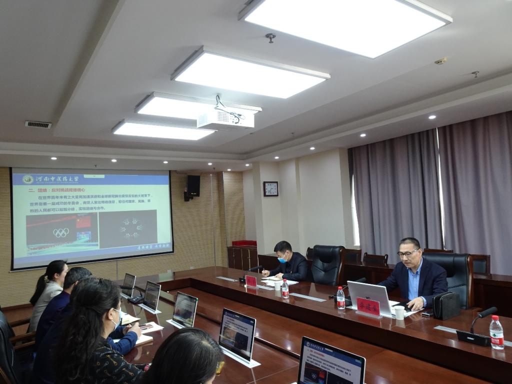 本网讯(文图/翟优)为深入贯彻习近平总书记关于“大思政课”的重要指示精神,全面落实《关于新时代加强和改进思想政治工作的意见》,2022年3月8日下午,校党委委员、副校长李建生以“冰上逐梦,实现自我”为题,通过线上、线下相结合的方式,在BS605为十大足球外围app排行 师生讲授“开学思政第一课”。学院党委书记张晓东主持会议。
